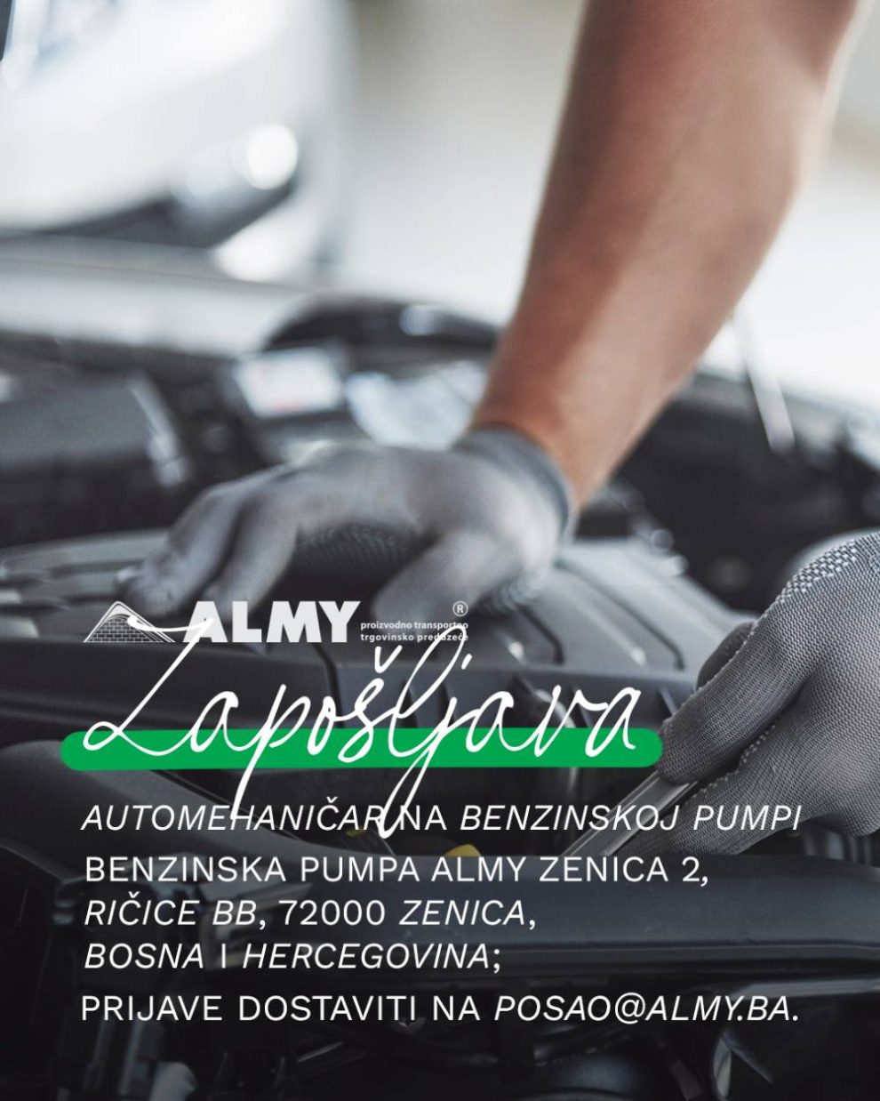 CV dostaviti na e-mail: [email protected] sa napomenom “Automehaničar – Almy Benzinska pumpa 2”