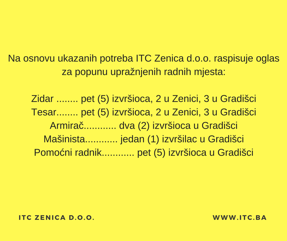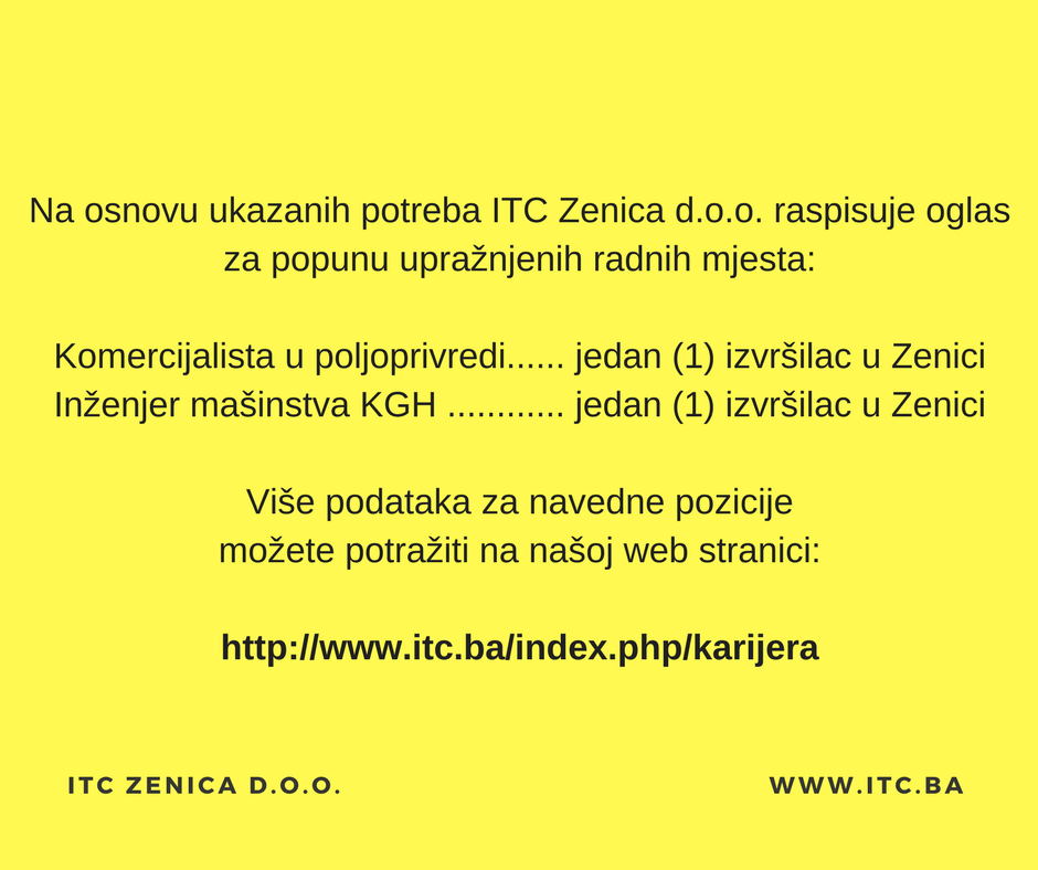 Posao: ITC traži radnike za vise pozicija u Gradišci i Zenici