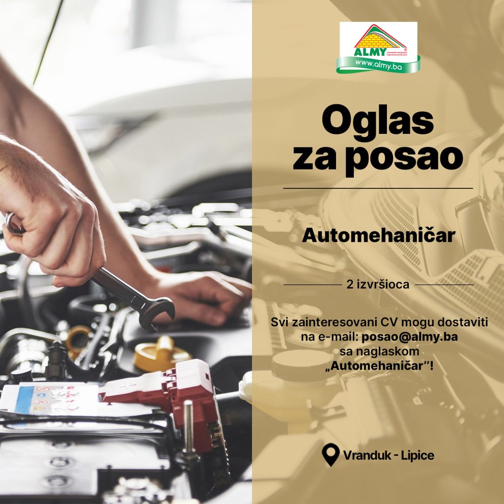 Vaš CV uz naglasak „Automehaničar” proslijediti na: [email protected]