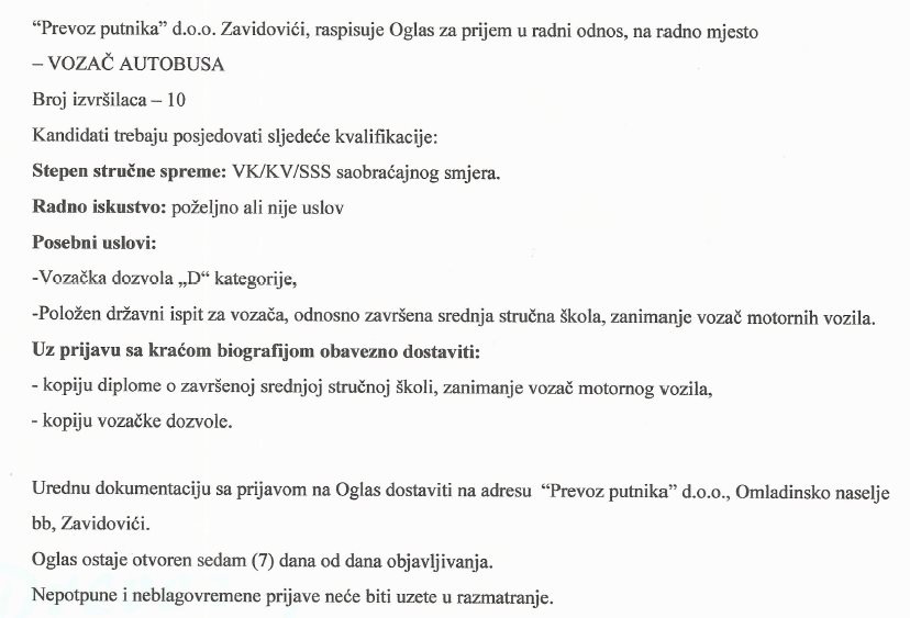Posao: potrebni vozači autobusa – Prevoz putnika d.o.o. Zevidovići