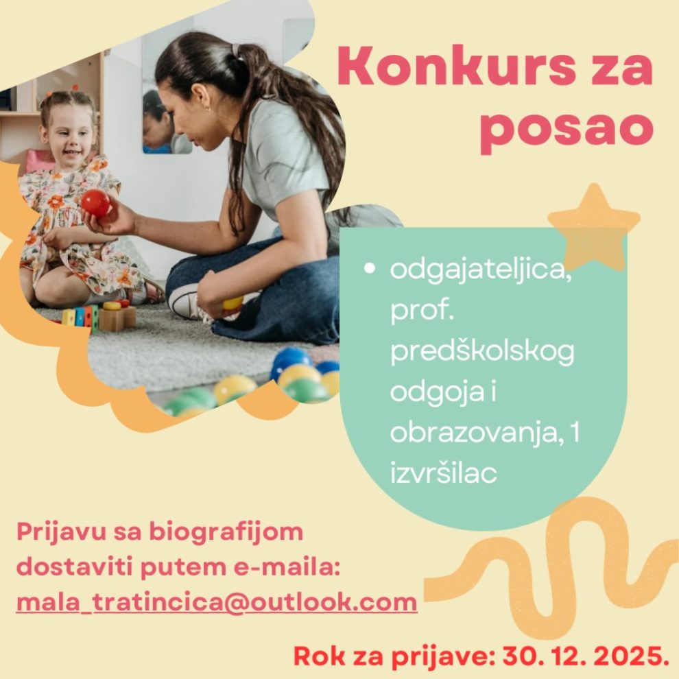 PPU “Mala tratinčica” Zenica raspisuje KONKURS za popunu slijedećeg radnog mjesta: