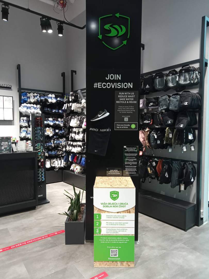 Naime, od prošle godine u određenim Sport Vision i Buzz radnjama u Sarajevu i Banjaluci se nalaze „eco kutije“ u koje možete donirati vašu staru obuću i odjeću. Doniranjem vaše stare obuće i odjeće kao nagradu dobijate pogodnosti za narednu kupovinu. Prikupljeni artikli se dalje dijele na nosive i nenosive, Sport Vision kompanija u saradnji sa humanitarnim udruženjem „ADRA“ neupotrebljive artikle reciklira, a upotrebljive reparira i donira u humanitarne svrhe.