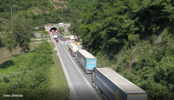 Potpuna blokada u Vranduku, kamion udario u konstrukciju – Zbog saobraćajne nezgode koja se dogodila u tunelu Vranduk II na magistralnom putu M-17 Zenica-Nemila, saobraćaj je obustavljen i preusmjerava se na alternativne pravce, saopćeno je iz BIHAMK-a za N1.