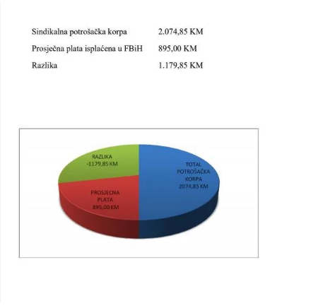 Potrošačka korpa u BiH iznosi čak 2.074 KM, plaća je ne može pokriti ni 50 posto: Kako izaći na kraj – Sindikalna potrošačka korpa koju je Savez samostalnih sindikata Bosne i Hercegovine izračunao za april 2019. godine iznosi 2.074,85 KM i za 50,45 KM je skuplja od potrošačke korpe za prethodni mjesec.