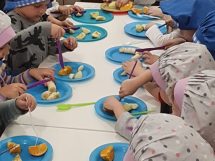 U vrtićima pripreme grupe mališana prema njihovom uzrastu, sa kojima nutricionistica, uz podršku kolegica i kolega iz Službe za školsku higijenu INZ-a, razgovara o tome šta oni vole ili ne vole jesti, igra igre prepoznavanja voća i povrća, zdravih i manje zdravih namirnica. mališani imaju i “praktični” dio radionice, gdje pripreme i jedu zdrave namirnice, uglavnom voće.