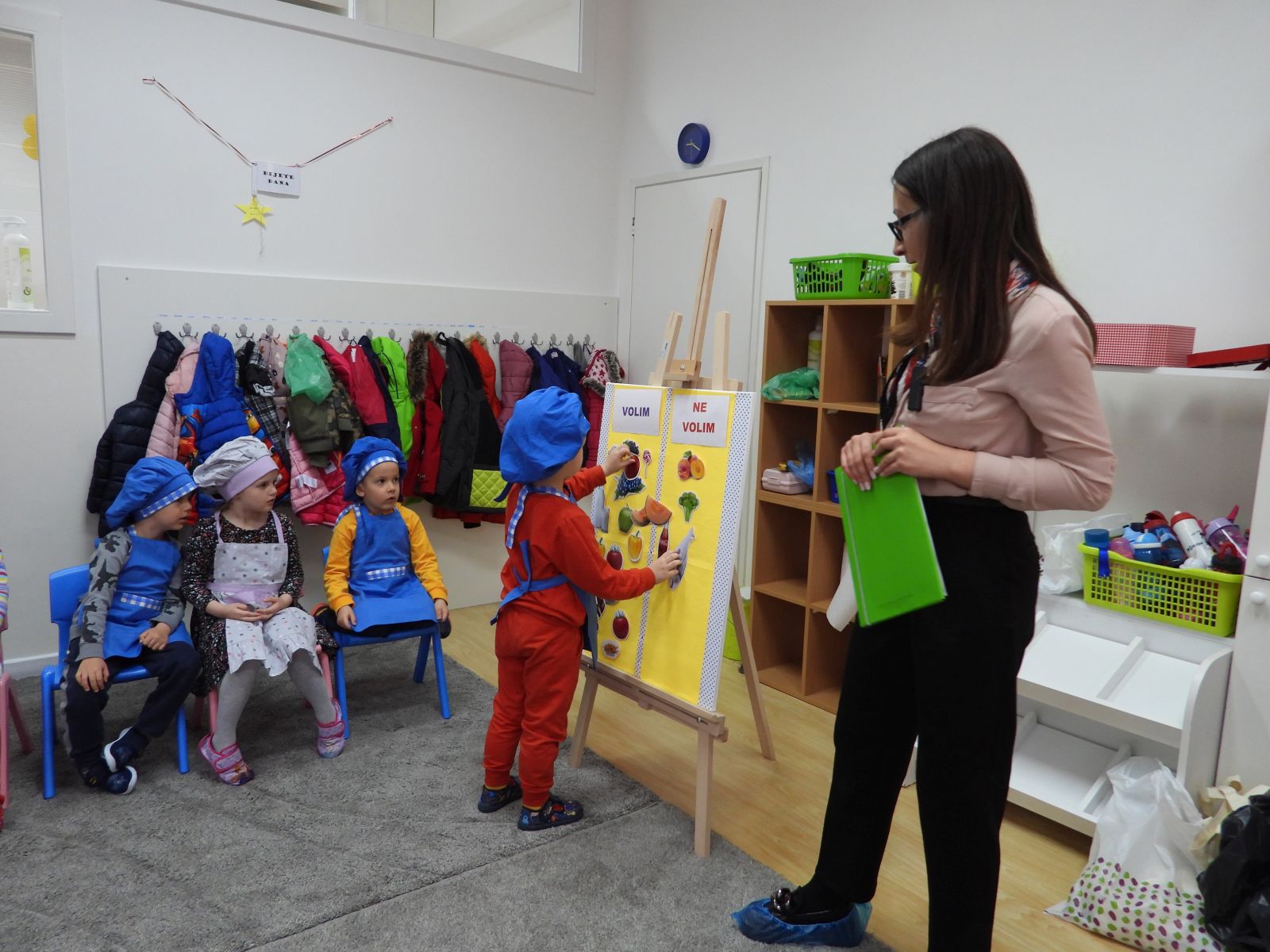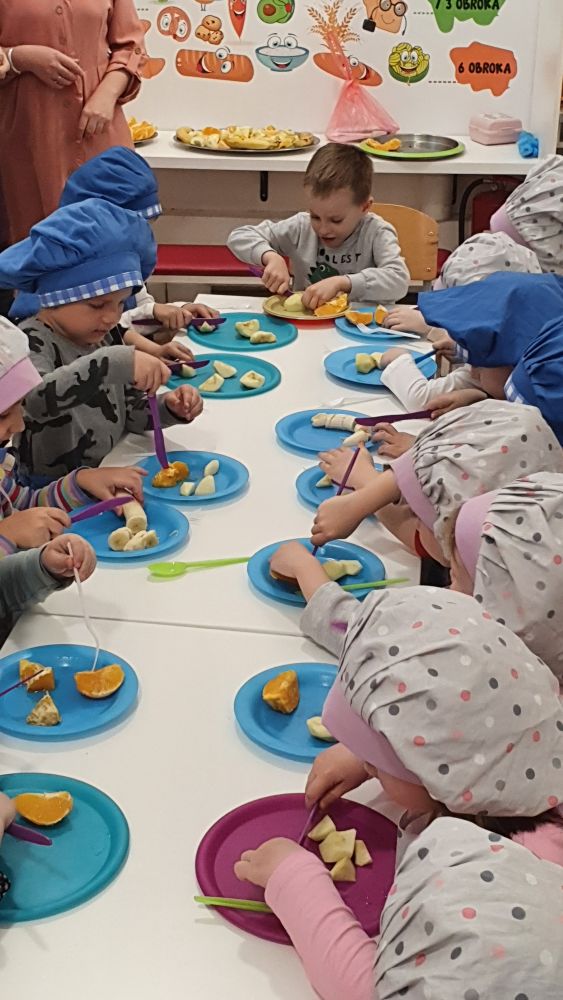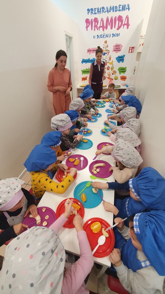 U vrtićima pripreme grupe mališana prema njihovom uzrastu, sa kojima nutricionistica, uz podršku kolegica i kolega iz Službe za školsku higijenu INZ-a, razgovara o tome šta oni vole ili ne vole jesti, igra igre prepoznavanja voća i povrća, zdravih i manje zdravih namirnica. mališani imaju i “praktični” dio radionice, gdje pripreme i jedu zdrave namirnice, uglavnom voće.