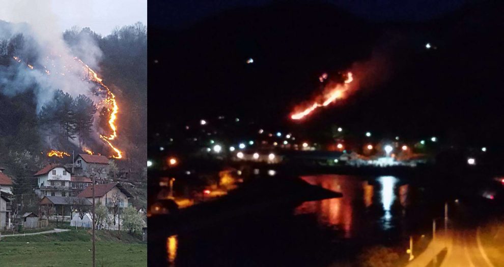 Požar na brdima nadomak Raspotočja i Bojinog vira – Na području Raspotočja i Bojinog vira vidljiv je i u večernjim satima veliki požar čiji krak se približio kućama, a bijesni od popodnevnih sati. Kao i mnogo puta ranije, vidljivo je da potiče od nestručnog i nekontrolisanog paljenja šikare i radovima na njivama.