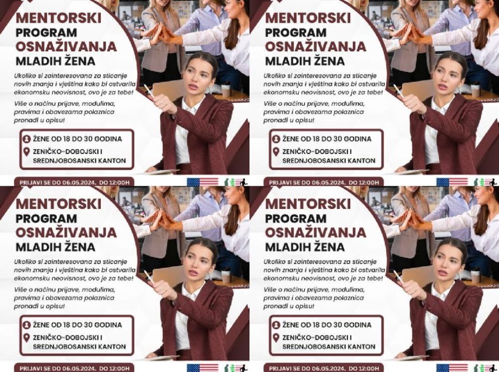 Omladinsko udruženje „REaktiviraj“ Zenica, u okviru projekta „Decreasing outmigration by increasing opportunity: A professional mentoring and career enhancement project for women in Zenica Doboj Canton“ kojeg podržava Američka ambasada u Bosni i Hercegovini, objavljuje