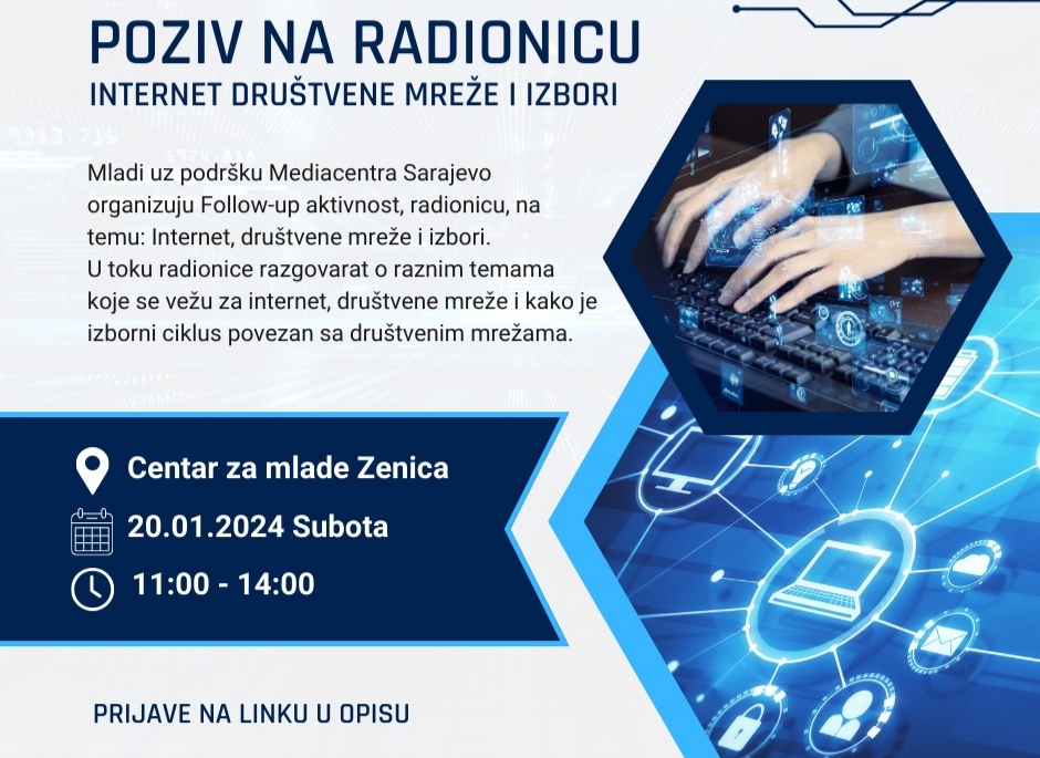 Mladi uz podršku Mediacentra Sarajevo organizuju Follow-up aktivnost, radionicu, na temu: Internet, društvene mreže i izbori.