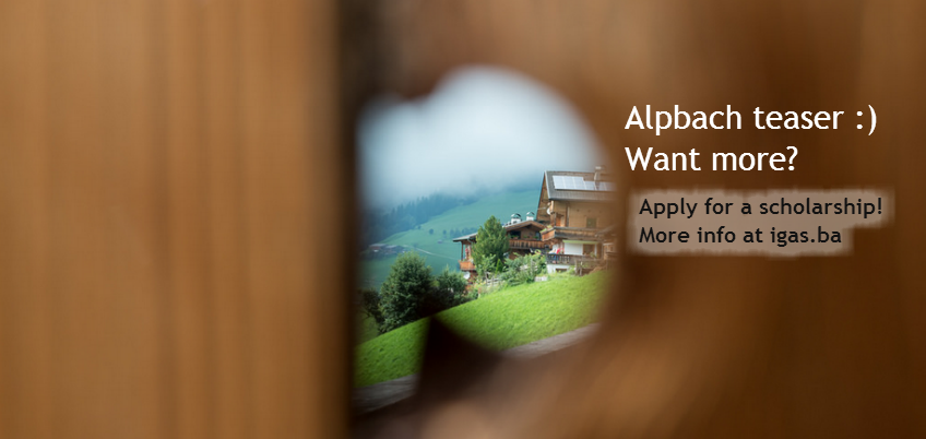 Poziv za prijave za stipendije Evropskog foruma Alpbach 2017 – Poziv za prijave na program stipendiranja za odlazak na Evropski Forum Alpbach u Austriji, jednu od najuglednijih evropskih konferencija, otvoren je do 31. marta 2017. godine za sve mlade osobe iz Bosne i Hercegovine dobi od 18 do 30 godina. Prezentacije „Kako aplicirati za stipendiju Evropskog Foruma Alpbach“ bit će održane 15 . marta 2017. godine u 18h na Ekonomskom fakultetu u Sarajevu (E-net Centar, III sprat) te u subotu 11. marta 2017. godine u Mostaru na Filozofskom fakultetu Sveučilišta u Mostaru u 11 sati (Amfiteatar 12).
