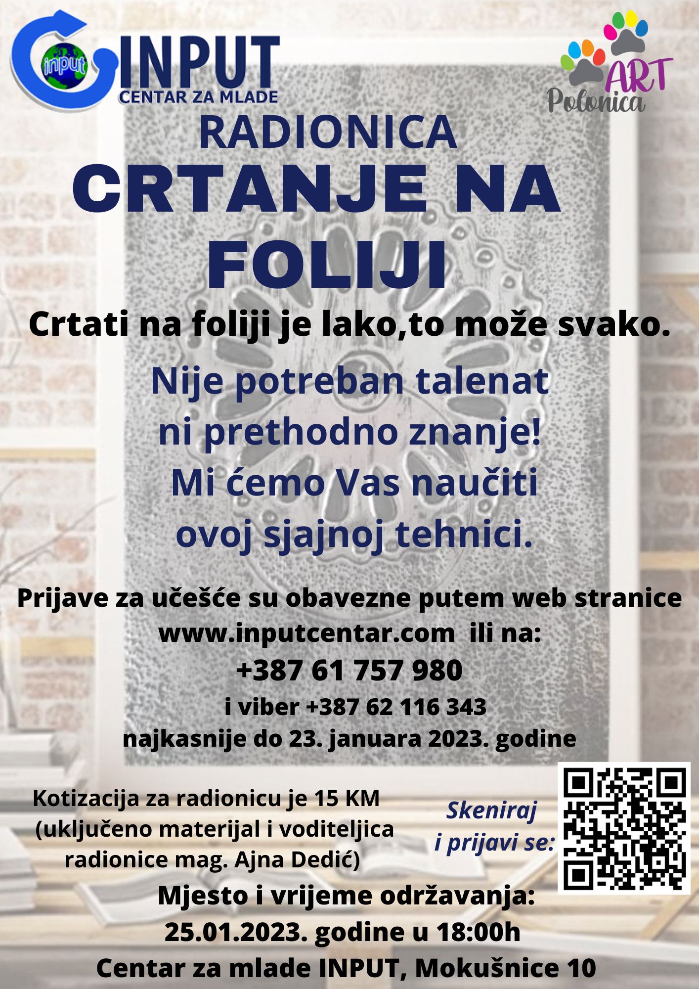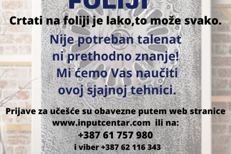 Dana 25. januara 2023. godine, Centar za mlade INPUT u saradnji sa Polonica ART organizuje kreativnu radionicu „CRTANJE NA ALUMINIJSKOJ FOLIJI“ koja će početi u 18:00 u Centru za mlade INPUT na Mokušnicama (Mokušnice 10).