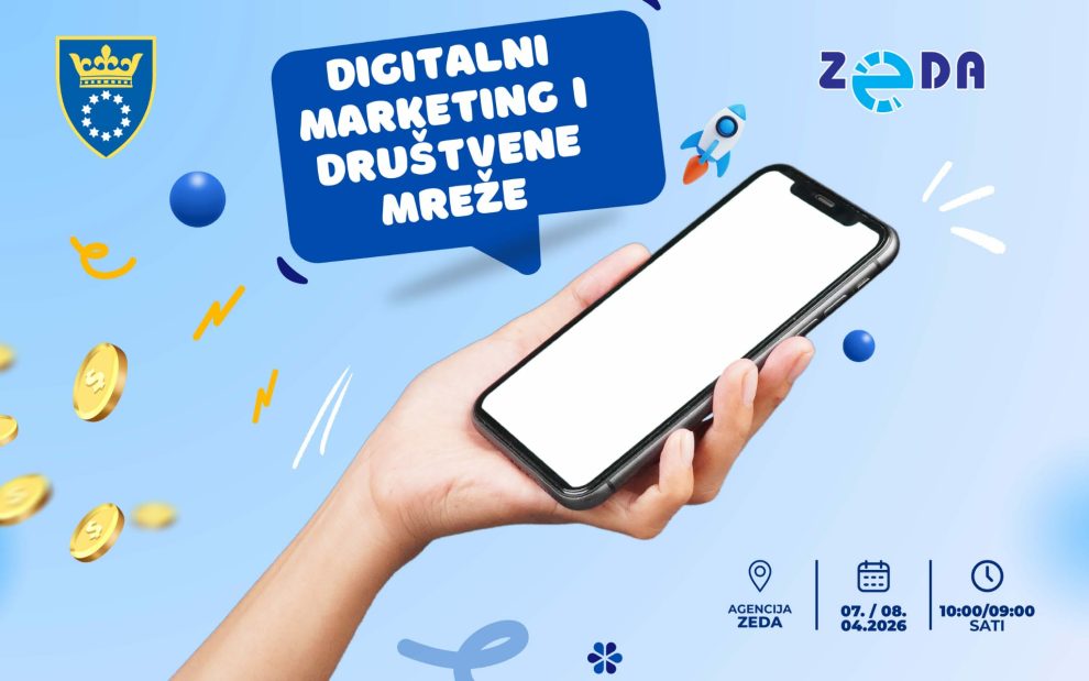 Agencija ZEDA poziva privrednike, studente, nezaposlene ali i zaposlene koji žele nadograditi svoje znanje ali i sve zainteresovane da učestvuju na dvodnevnoj radionici na temu „Digitalni marketing i društvene mreže“, koja se realizuje u okviru projekta „Unapređenje konkurentnosti proizvođača domaćih proizvoda kroz jačanje brenda, promociju i medijsku kampanju“, finansiranog od strane Ministarstva za privredu Zeničko-dobojskog kantona.
