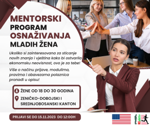 Mentorski program osnaživanja mladih žena dio je projekta „Decreasing outmigration by increasing opportunity: A professional mentoring and career enhancement project for women in Zenica Doboj Canton“ kojeg podržava Američka ambasada u Bosni i Hercegovini.