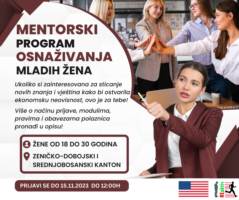 Omladinsko udruženje REaktiv nastavlja kontinuirano da radi na osnaživanju mladih u zajednici. Ovoga puta radi se o devetomjesečnom mentorskom programu osnaživanja mladih žena sa područja Zeničko-dobojskog i Srednjobosanskog kantona, u dobi od 18 do 30 godina. Cilj programa je osnaživanje i poticanje mladih žena, kao marginalizovane skupine društva, da stječu nova i unaprijede ranije stečena znanja i vještine kako bi nakon završetka formalnog obrazovanja (srednje škole, fakulteta) bile spremne za tržište rada i ostvarile ekonomsku neovisnost.