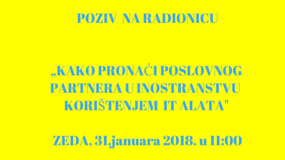 RADIONICA – „ KAKO PRONAĆI POSLOVNOG PARTNERA U INOSTRANSTVU KORIŠTENJEM