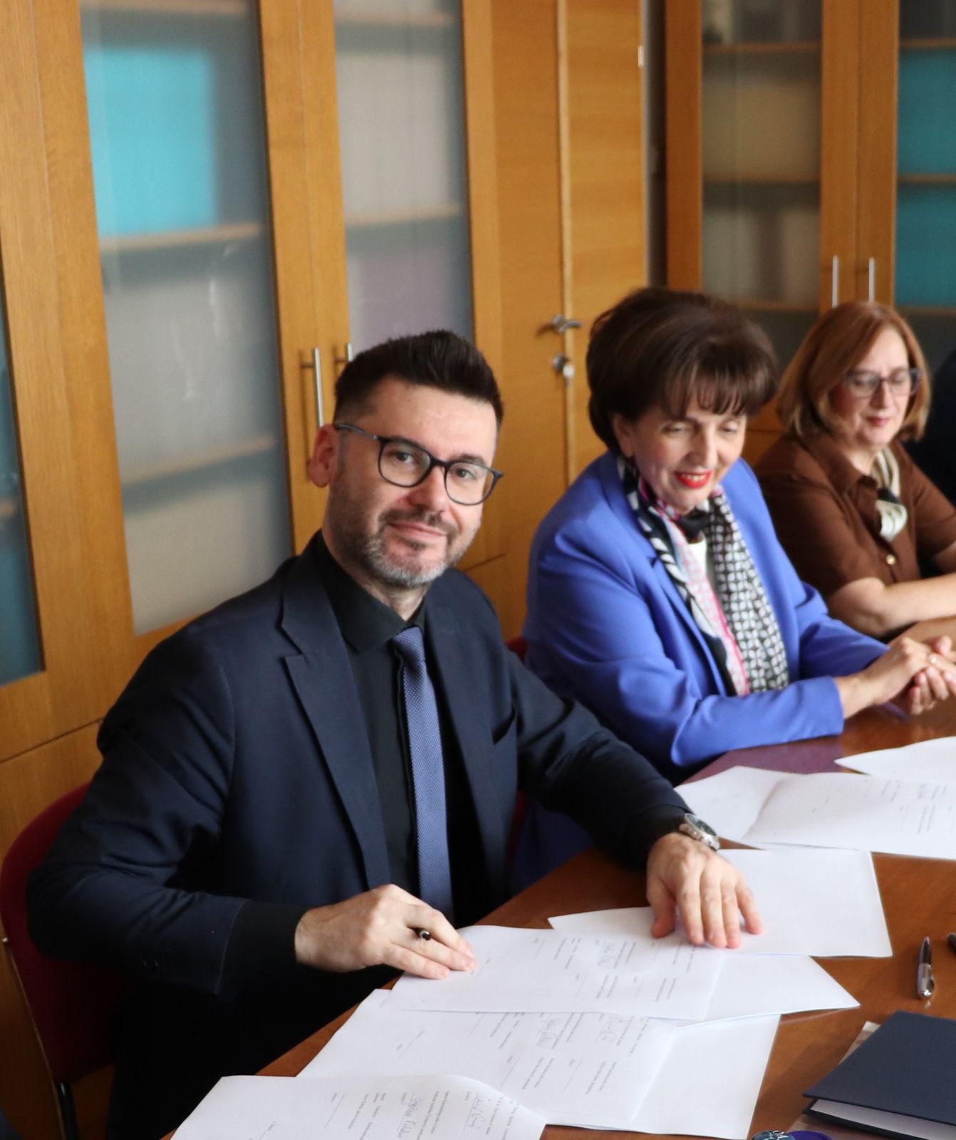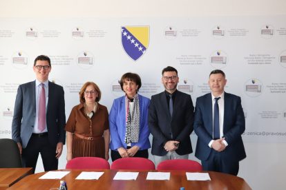 Svečanom potpisivanju sporazuma prisustvovali su i prodekanesa za naučnoistraživački rad i predmetna nastavnica na Građanskom procesnom pravu doc. dr. Dženana Radončić, šef Katedre za državno i međunarodno javno pravo i predmetni nastavnik na Upravnom pravu doc. dr. Sedad Dedić, te viša asistentica na Katedri za krivično pravo i koordinatorica projekta ispred fakulteta mr. iur. Lejla Zilić-Čurić.