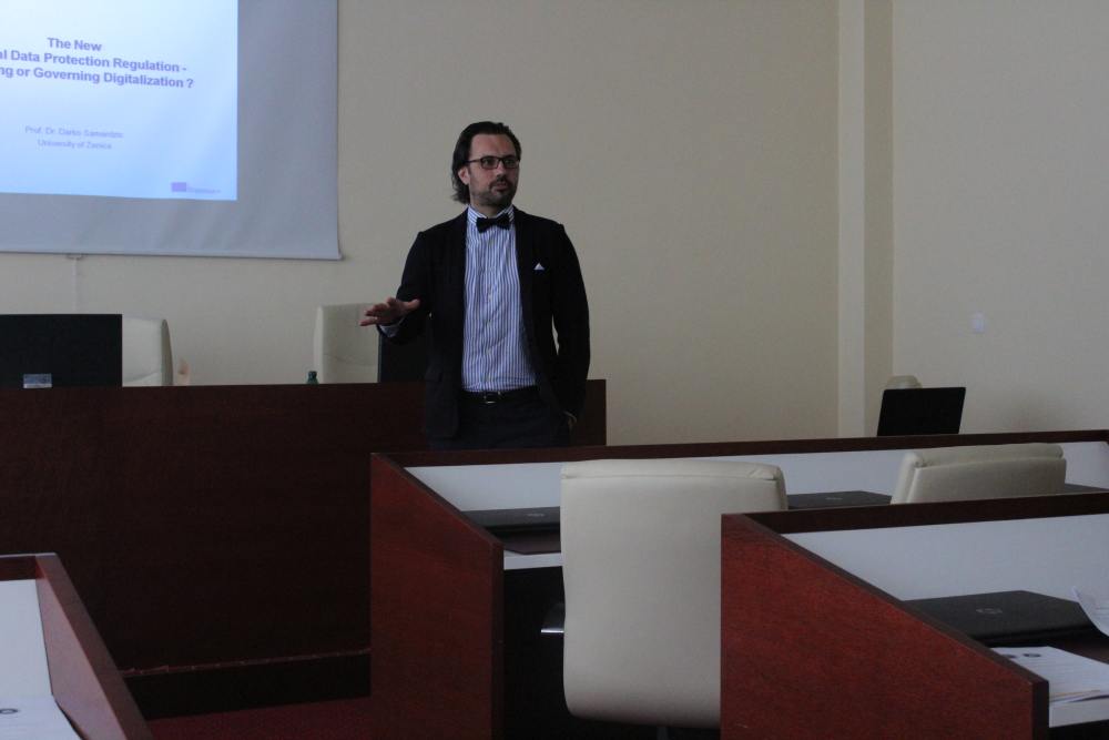 Na Pravnom fakultetu Univerziteta u Zenici, danas 28. 05.2018. godine održan je niz događaja. Okrugli sto na temu MARKET FREEDOMS AND HUMAN RIGHTS IN EU“ započeo je u 11,00 sati u multimedijalnoj sali i trajao je do kasnih popodnevnih sati. Ovom prilikom predavanja su održali Ass. Iuris Mareike Fröhlich (LL.M, Europe-Institut of Saarland University), prof. Darko Samardzić (PhD Hamburg), studenti dodiplomskog studija Pravnog fakulteta Amina Hasanović, Ajna Mahmić i Emir živčić, kao i studenti doktorskog studija Džejna Suljević, MA, Derviša Zahirović, MA i Faris Godinjak, MA. Iza svakog od navedenih predavanja održane su zanimljive i značajne diskusije, koje će studentima svakako doprinjeti u poboljšanju i nastavku istraživanja.
