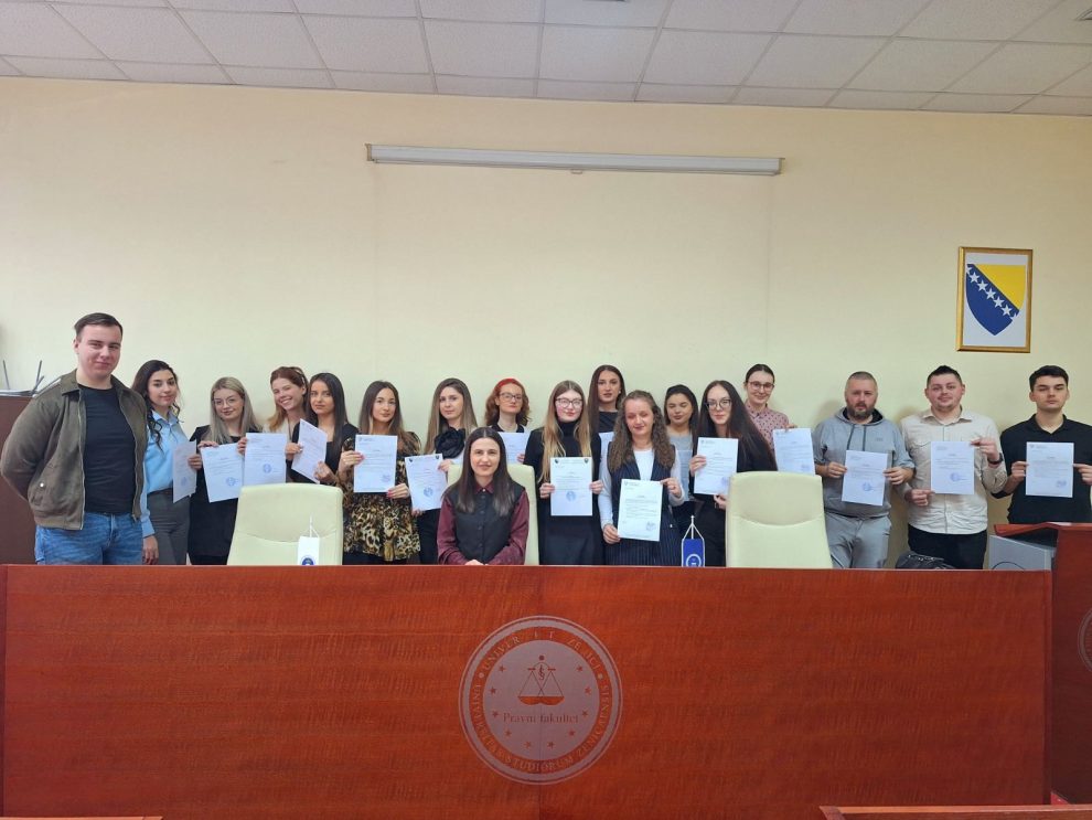 Studentima je potvrde uručila mr. iur. Lejla Zilić-Čurić, koordinatorica projekta Stručne studentske prakse iz Krivičnog procesnog prava ispred Pravnog fakulteta Univerziteta u Zenici.