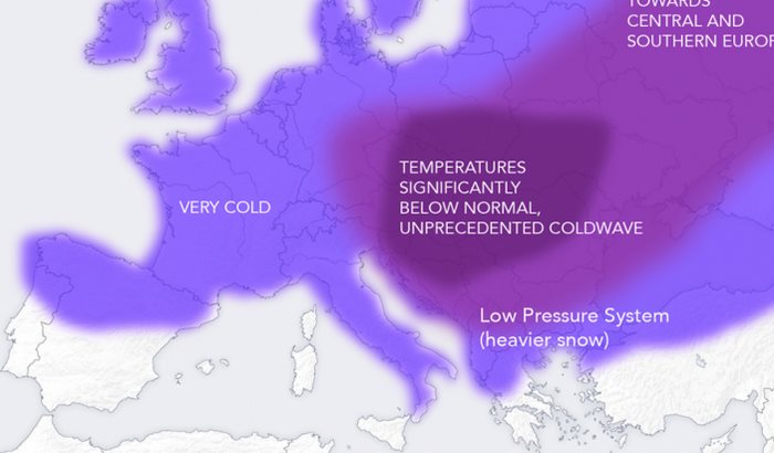 1. Veliki udar hladnoće u većem dijelu Europe – projiciranje