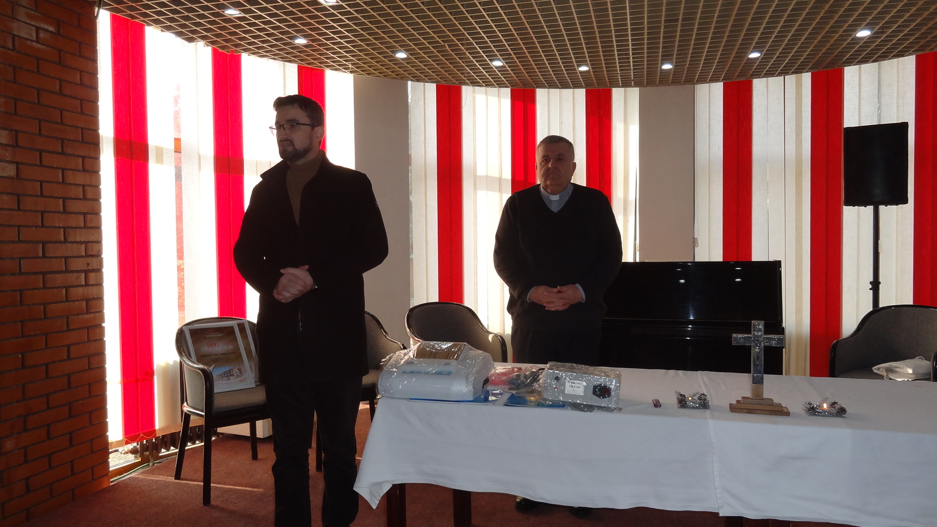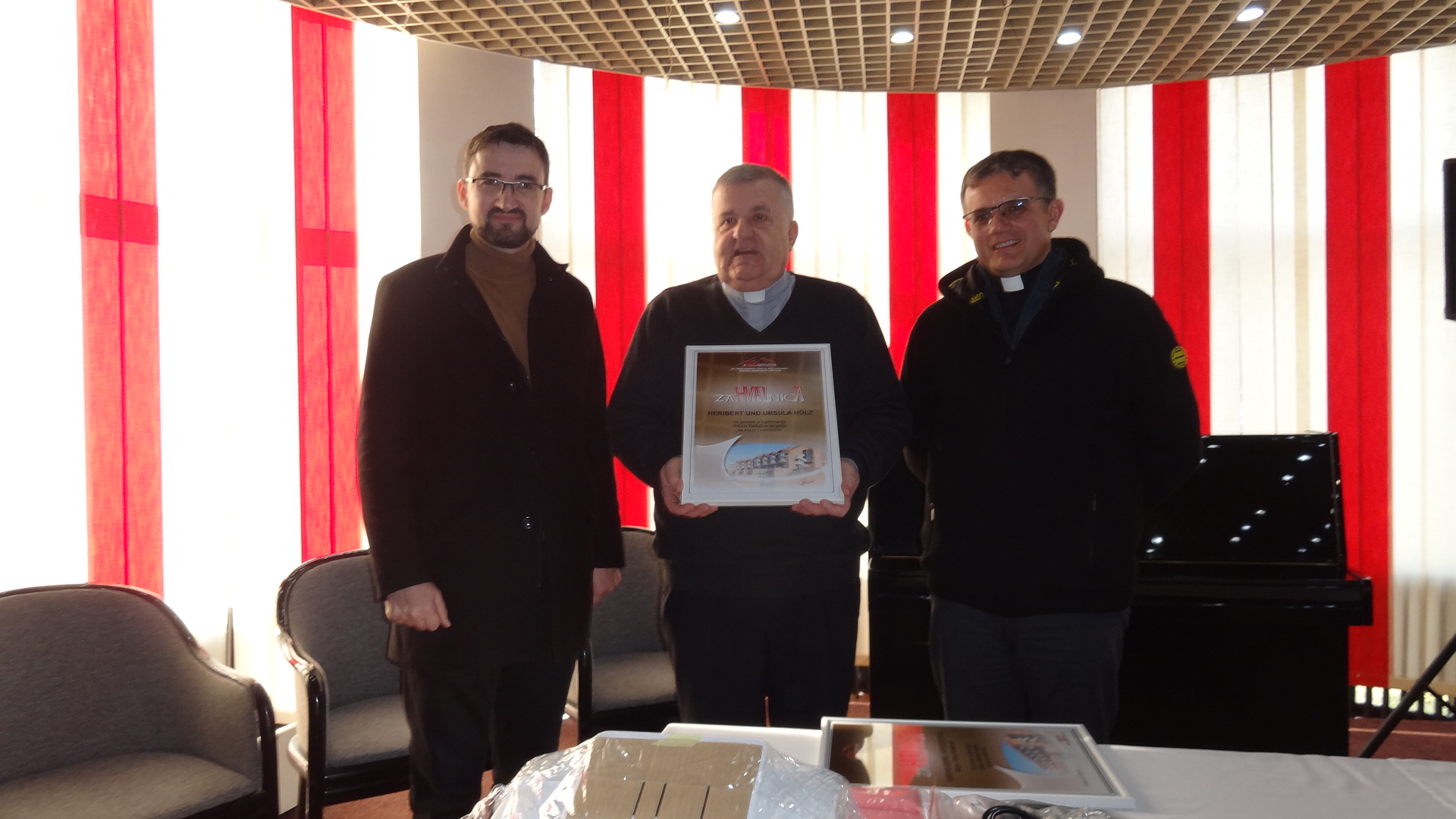 Nakon završetka euharistijskog slavlja slijedio je drugi dio predbožićno darivanje Caritasa Bosne i Hercegovine za potrebe doma za umirovljenike i svih njegovih korisnika. Naime, nakon lijepog broja darovatelja iz tuzemstva i inozemstva, među koje spada i Vlada Republike Hrvatske, aktualni direktor pokucao je i na vrata Caritasa BiH moleći potporu za konkretne projekte, a koji će itekako uljepšati i olakšati život i rad svih koji žive i rade u ovom zeničkom domu za stare. Kroz više desetljeća veliki prijatelji Bosne, posebno Središnje Bosne i Zeničke kotline, obitelj Ursule i Heriberta Hölz iz Caritasa Duisburg u Njemačkoj velikodušno su se odazvali i preko Caritasa BiH u ovo predbožićno vrijeme darivali ovu zeničku ustanovu opremom za fizikalnu terapiju, zatim specijalizirani aparat za elektroterapiju s pratećom opremom. Ravnatelj Caritasa BiH mons. Tomo Knežević direktoru gosp. Damiru Jukiću predao je nabavljene sadržaje uz napomenu kako su ovo božićni darovi svim korisnicima crkvičkog „Penzionerskog doma sa stacionarom“ s jednom jedinom željom da im svakodnevnica, usprkos starosti i bolesti, bude još ljepša i lakša. Direktor Jukić zahvalio je Caritasu Bosne i Hercegovine, Caritasu Duisburg, ravnatelju mons. Tomi Kneževiću i bračnome paru Ursuli i Heribertu Hölz, te im predao zahvalnica.