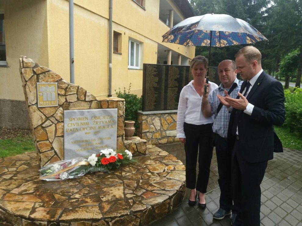 Predsjedavajući Skupštine Jasmin Duvnjak i predsjedavajuća OV Maglaj Svjetlana Zamboni polaganjem cvijeća odali su počast šehidima i poginulim borcima u odbrani Maglaja od agresije 92′-95′, te stradalim civilnim žrtvama rata.
