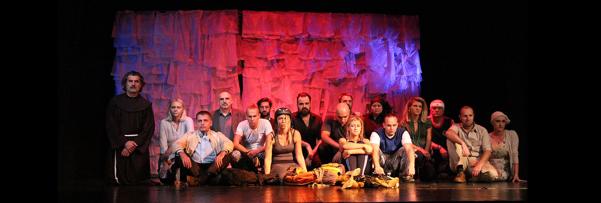 U predstavi igra sedamnaest glumaca iz tri teatarske kuće. Adaptaciju teksta potpisuju Dragan Komadina i Tanja Miletić-Oručević, scenografi i autori videa su Matko Vekić i Mirta Vekić, kostimografkinja je Sabina Trnka, a autor muzike je Atila Aksoj.