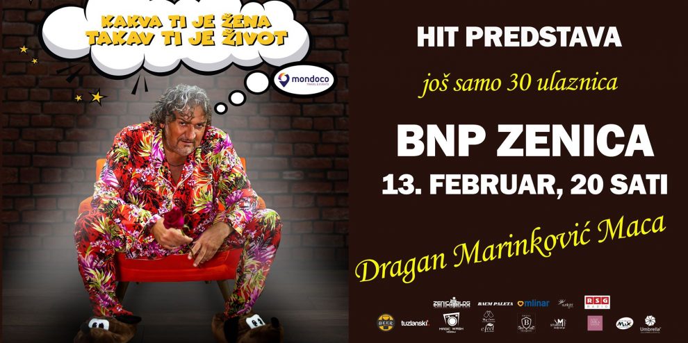 Nova predstava Dragana Marinkovića Mace postala je regionalni hit. Predstava koja nosi naziv Kakva ti je žena takav ti je život puni pozorišne dvorane u Bosni i Hercegovini, Hrvatskoj i Srbiji. Tako je u Zenici igrala dva puta, a planirano je da ponovo bude na repertoaru 13. februara u 20 sati.