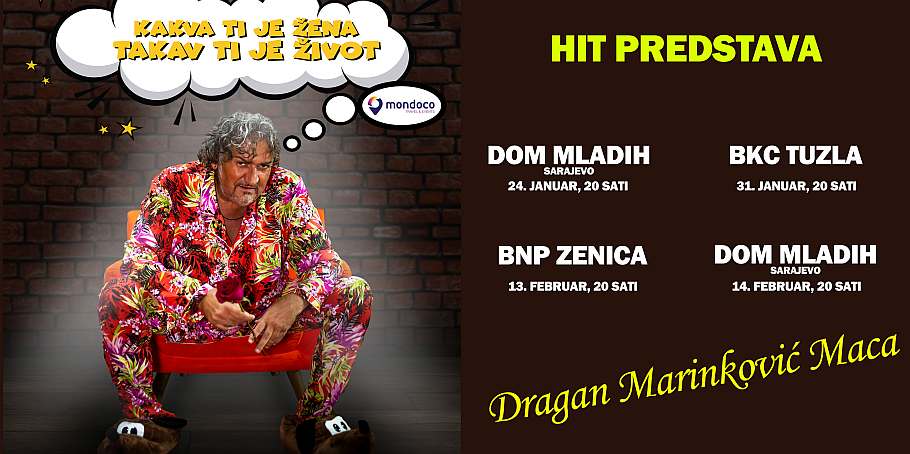 Predstava “Kakva ti je žena takav ti je život” regionalni hit – ponovo u Zenici 13. februara – Nova predstava Dragana Marinkovića Mace postala je regionalni hit. Predstava koja nosi naziv Kakva ti je žena takav ti je život puni pozorišne dvorane u Bosni I Hercegovini, Hrvatskoj I Srbiji.