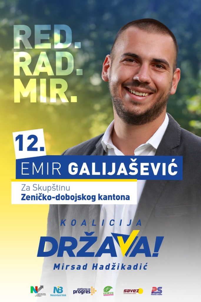 Sa sjevera kantona, iz Tešnja nam dolazi Emir Galijašević. Emir je kandidat pod rednim brojem 12. Iako rođen u Švedskoj, osnovno i srednje obrazovanje završio je u Tešnju, a Saobraćajni fakultet u Doboju. Radno iskustvo stekao je na više različiih poslova. Emir je aktuelni vijećnik u Općinskom vijeću u Tešnju. Društveno je angažiran u svojoj zajednici i učesnik mnogobrojnih radionica, seminara, kampova i konferencija.
