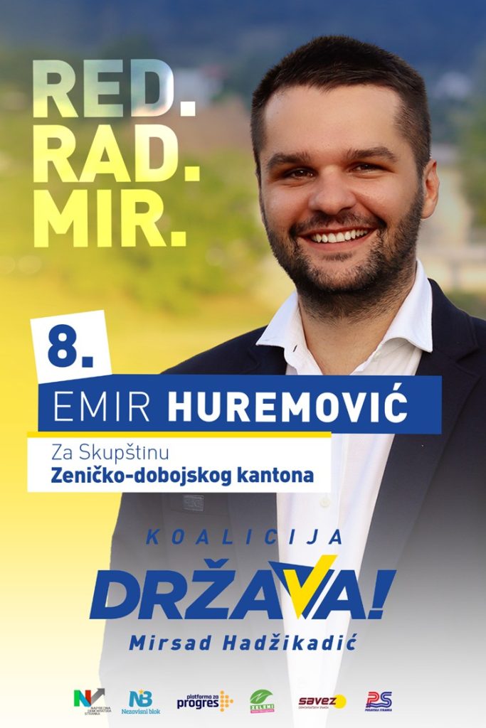 Emir Huremović je pod rednim broje 8. Kandidatske liste. Dolazi iz Zavidovića gde je završio osnovno i srednje obrazovanje. Rudarsko-geološko-građevinski fakultet završio je u Tuzli. Danas živi i radi kao inženjer građevine u Zavidovićima. Emir vjeruje da su ljudiokupljeni oko Koalicije Država budućnost Bosne i Hercegovine. Zato je i on dio ove pozitivne priče.