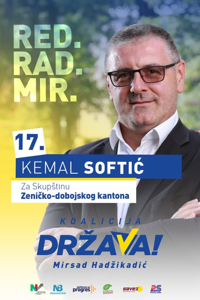 Na rednom broju 17 je Kemal Softić. Dolazi iz Zenice gdje je završio osnovnu i srednju školu dok je Veterinarski fakultet završio u Sarajevu. Kemal živi i radi u Zenici. Od 2005. godine zaposlen kao komercijalni saradnik. Društveno i političi je aktivan i vjeruje da Koalicija Država može da donese promjene.