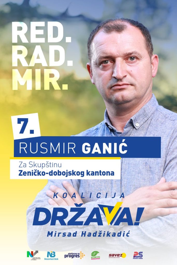 Iz Visokog nad dolazi Rusmir Ganić. Rusmir je na kandidatskoj listi na rednom broju 7. Dvadeset godna vodi obrt kožne konfekcije i galanterije u Visokom. Kao privredniku vrlo dobro mu je poznata situacija u kojoj se privrednici nalaze. Upravo to ga je motivisalo da se politički angažuje i napravi promjene. Vjeruje da su promjene moguće i da ih Koalicija Država sigurno donosi.