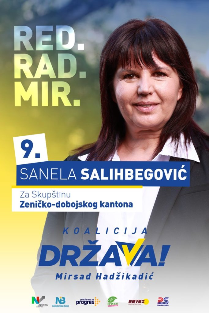 Visočanka Sanela Salihbegović je na rednom broju 9. Kandidatske liste za Skupštinu Zeničko-dobojskog kantona. Sanela je zaposlena na poziciji menadžerice u sferi reklamne industrije. Aktivistica je i učesnica mnogobrojnih humanitarnih akcija. Aktivno se bavi slikarstvom i hortikulturom.