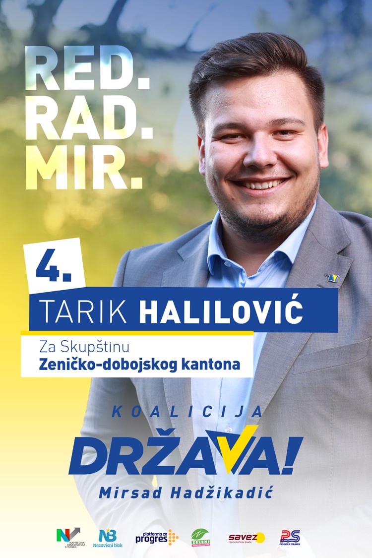 Tark Halilović dolazi iz Visokog i nalazi se na rednom broju 4. Kandidatske liste. Tarik je najmlađi izabrani vijećnik u Bosni i Hercegovini, a svoj mandat obnaša u Gradskom vijeću grada Visoko. Kao predstavnik mladih, Tarik je pokretačka snaga Koalicije Država.