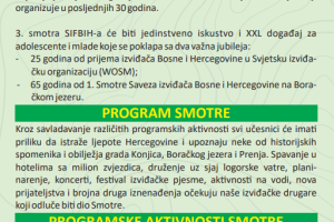 Smotra Saveza Izviđača Federacije BiH (SIFBIH), okuplja preko 1000 učesnika i gostiju, iz više od 30 gradova i 6 zemalja, čineći je najvećim organizovanim boravkom u prirodi za mlade u Bosni i Hercegovini. Osmodnevni događaj, koji se poklapa sa važnim jubilejima, nudi učesnicima priliku za sticanje vještina, iskustava i prijateljstava kroz programe fokusirane na sigurnost, zaštitu životne sredine, mirovno obrazovanje i interkulturalnu saradnju. Pored edukativnog značaja, Smotra značajno doprinosi turizmu promovišući prirodne ljepote i kulturnu baštinu Bosne i Hercegovine, te jačajući međunarodne veze i turističku ponudu zemlje.