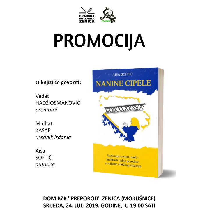 DOM BZK PREPOROD ZENICA, SRIJEDA, 24. JULI 2019. GODINE, 19.00 SATI – PREDSTAVLJANJE KNJIGE AIŠE SOFTIĆ „NANINE CIPELE“