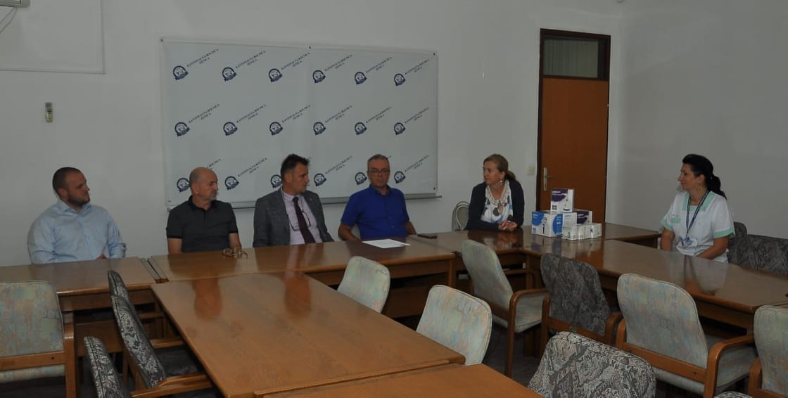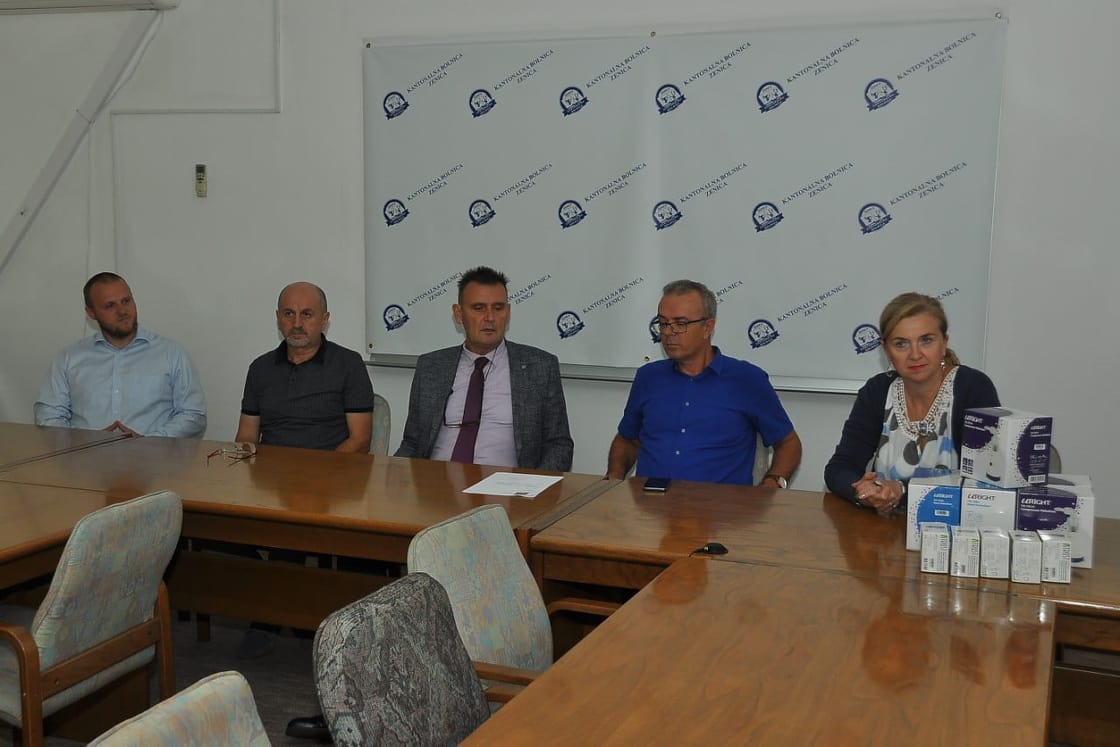 Ispred Kantonalne bolnice Zenica u preuzimanju opreme su prisustvovli: „Direktor bolnice, doktor Rasim Skomorac, njegov zamjenik doktor Kasim Spahić i glavna sestra Armina Babić“.
