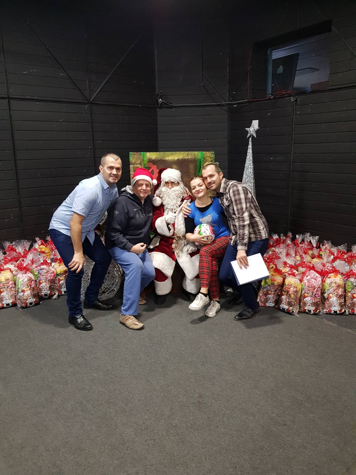 Podjeli paketića prethodilo je izvođenje predstave „Nanči i Banči“, kojom su čekajući dolazak Djeda Mraza, glumački prvaci zeničke dječije scene Anđela Ilić i Miroljub Mijatović do suza nasmijali naše mališane, ali i njihove roditelje. Ipak, ovom predstavom, uz mnogo zabave i smijeha, podsjetili su nas i koliko je važno istrajavati u uvjerenju da su naše iskrene i dobronamjerne želje ostvarive, samo ukoliko umijemo strpljivo čekati i dijeliti ih s nama dragim ljudima. I kako to obično biva u svim lijepim pričama sa sretnim završetkom, Djed Mraz kojeg je za ove potrebe uspješno utjelovio zaposlenik BNP-a Abidin Čolaković, konačno se pojavio i poveo malu raju iz Plave dvorane na malu scenu, radostan zbog saznanja da su tokom cijele godine bila dobra, marljiva i poslušna, gdje ih je nagradio novogodišnjim paketićima i zajedničkim fotografisanjem.