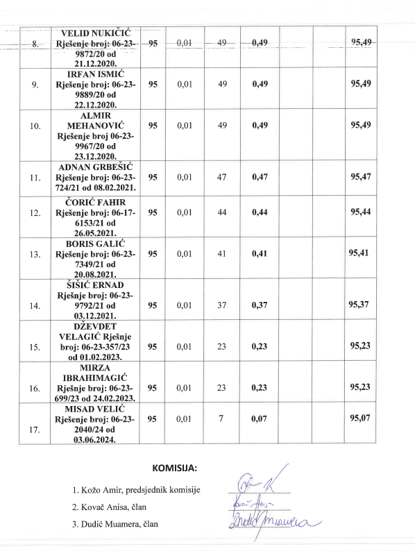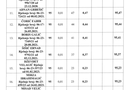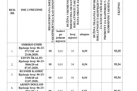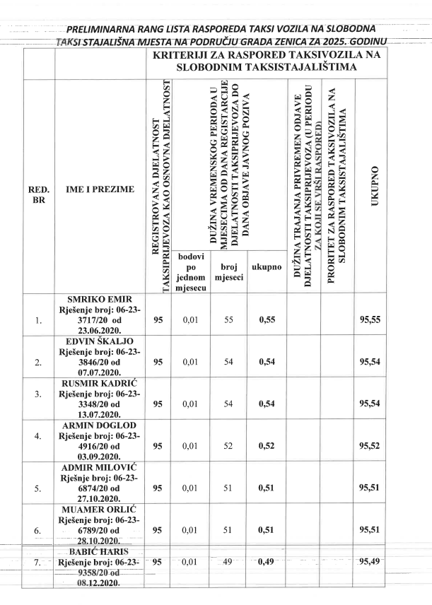 Preliminarna rang lista rasporeda taksi vozila na slobodna taksi stajališta na području Grada Zenica za 2025. godinu.