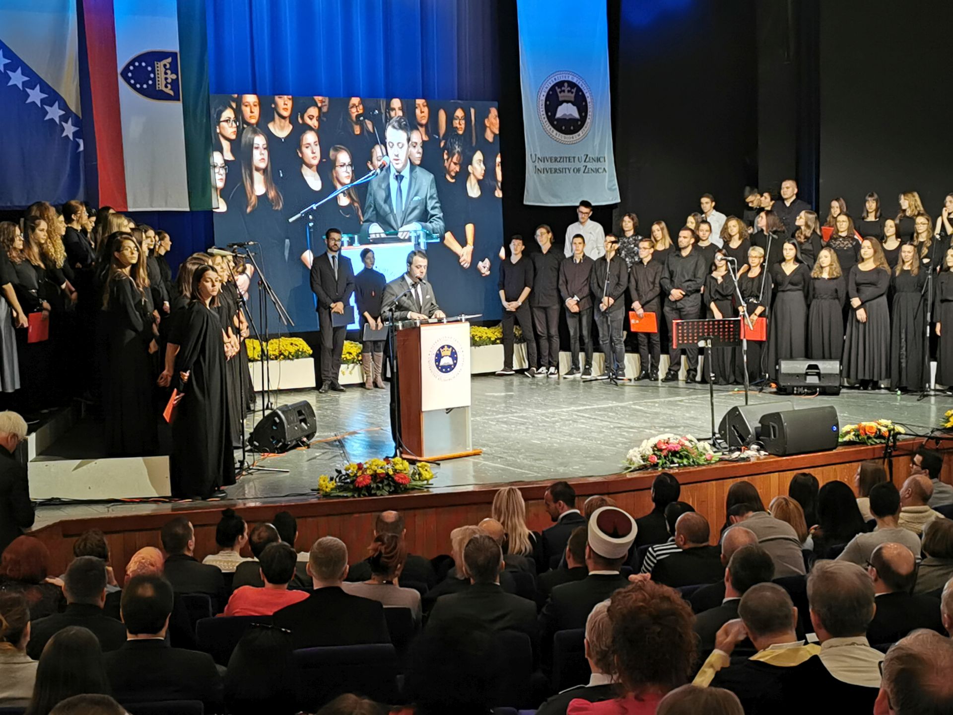 Premijer Ganić na svečanoj akademiji: UNZE daje nadu i optimizam da imamo budućnost – U Bosanskom narodnom pozorištu u Zenici održana je svečana akademija Univerziteta u Zenici povodom obilježavanja 60 godina visokog obrazovanja u Zenici. Akademiji su prisustvovali rektori svih javnih univerziteta u BiH, predstavnici univerzietta iz Srbije, Crne Gore i Hravtske, predstavnici diplomatskog kora, izvršne i zakonodavne vlasti, privrede i vjerskih zajednica.