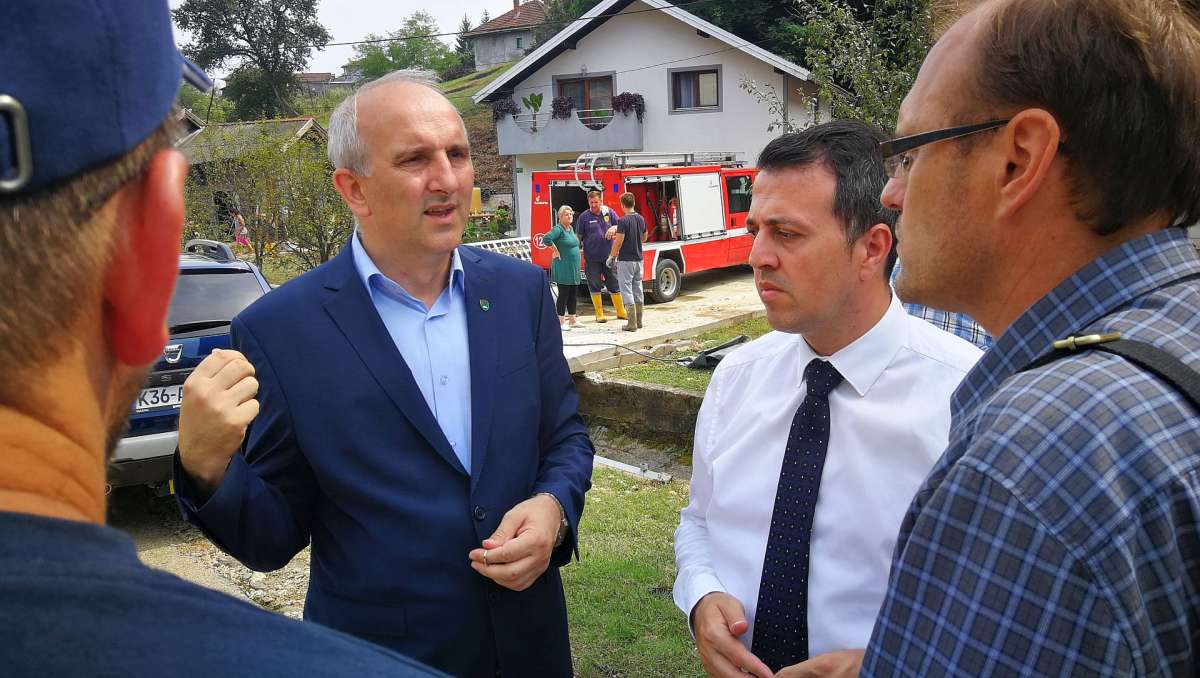 Premijer Ganić obišao poplavljena područja u Općini Tešanj – Premijer Zeničko-dobojskog kantona Mirza Ganić, u pratnji tešanjskog načelnika Suada Huskića i direktora Kantonalne uprave civilne zaštite Džavida Aličića, obišao je danas naselja u općini Tešanj koja su u petak navečer pogodile razorne poplave.