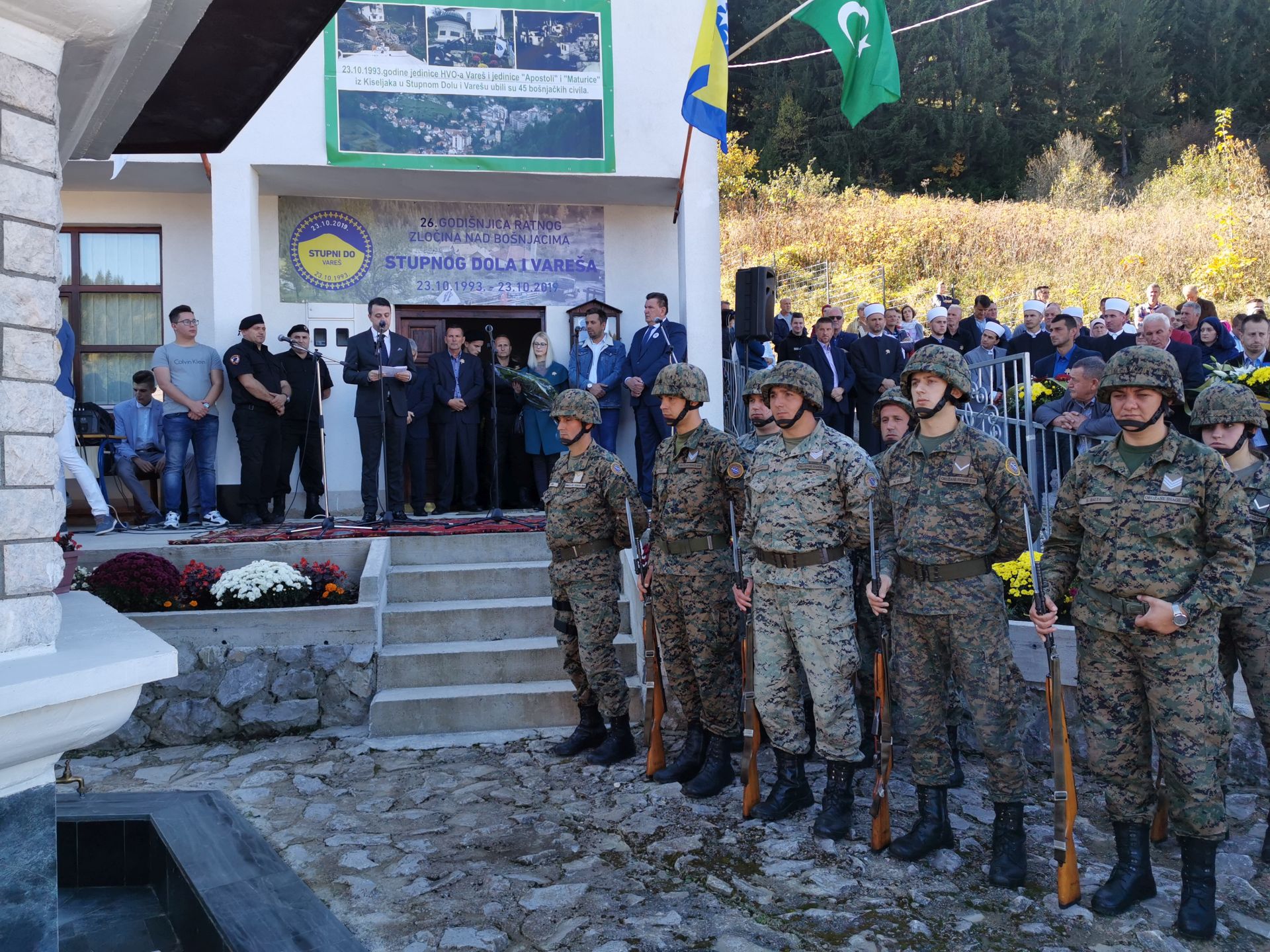 Premijer ZDK odao počast žrtvama zločina u Stupnom Dolu – U selu Stupni Do kod Vareša danas je obilježena 26. godišnjica zločina nad civilima bošnjačke nacionalnosti kojeg su počinili pripadnici Hrvatskog vijeća odbrane. U zoru 23. oktobra 1993. specijalne jedinice Apostoli i Maturice ubile su 38 osoba, među kojima sedamnaest žena, petoro djece i veći broj staraca, spalili 58 kuća i mjesnu džamiju.