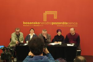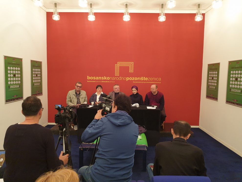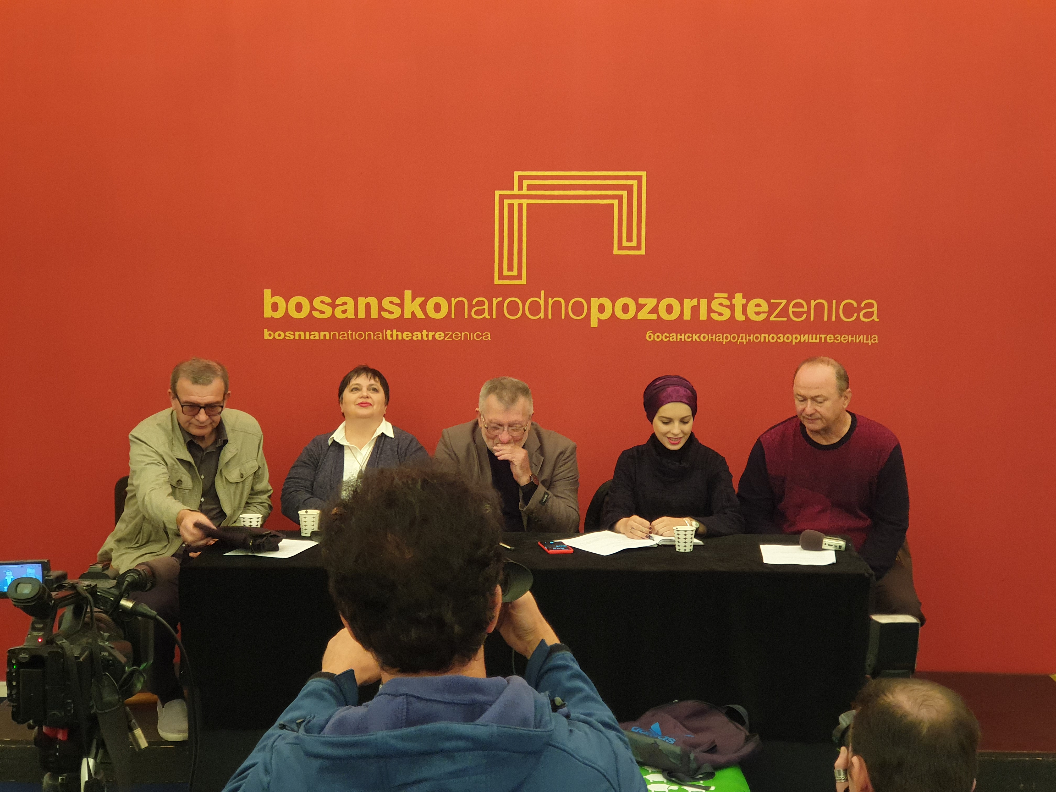 Povodom premijerne izvedbe predstave „Čoek na dvije noge“, na današnjoj konferenciji za medije su govorili: dramaturg Bosanskog narodnog pozorišta Zenica Hasan Džafić, autor teksta Nedžib Smajlović, rediteljica Faketa Salihbegović-Avdagić i glumac Mugdim Avdagić.