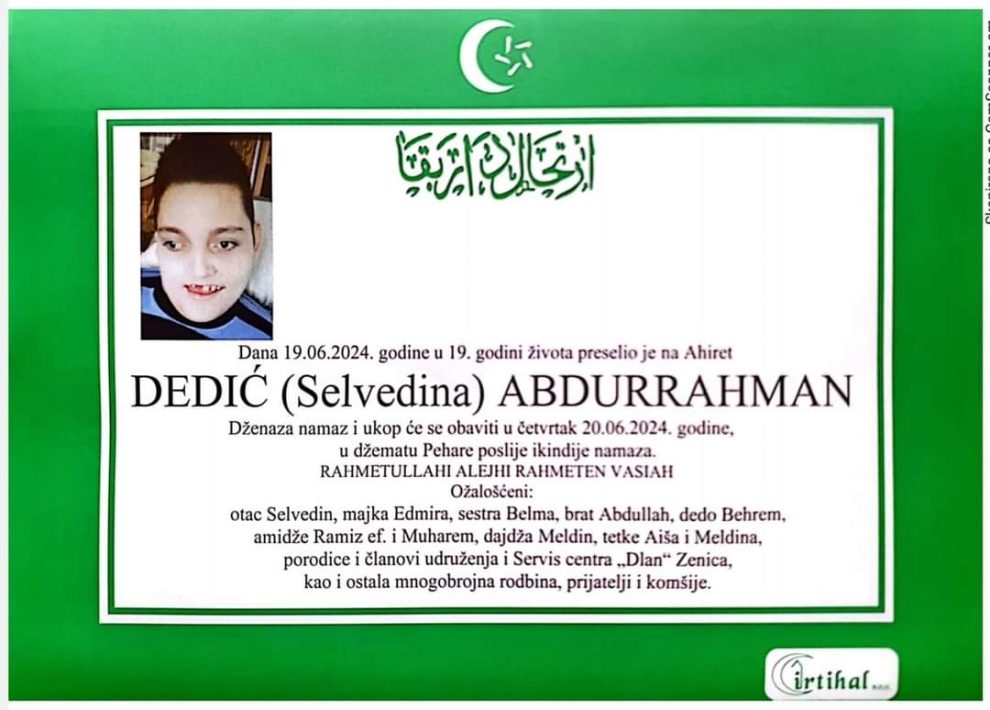 Danas je u 19. godini života preminuo Abdurrahman Dedić. Tim povodom oglasilo se i Udruženje Dlan: