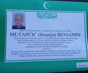 Dženaza je za subotu (10. august) u haremu Čaršijske džamije iza podne namaza (13:20h), dok će se ukop obaviti na mezarju Prašnice.