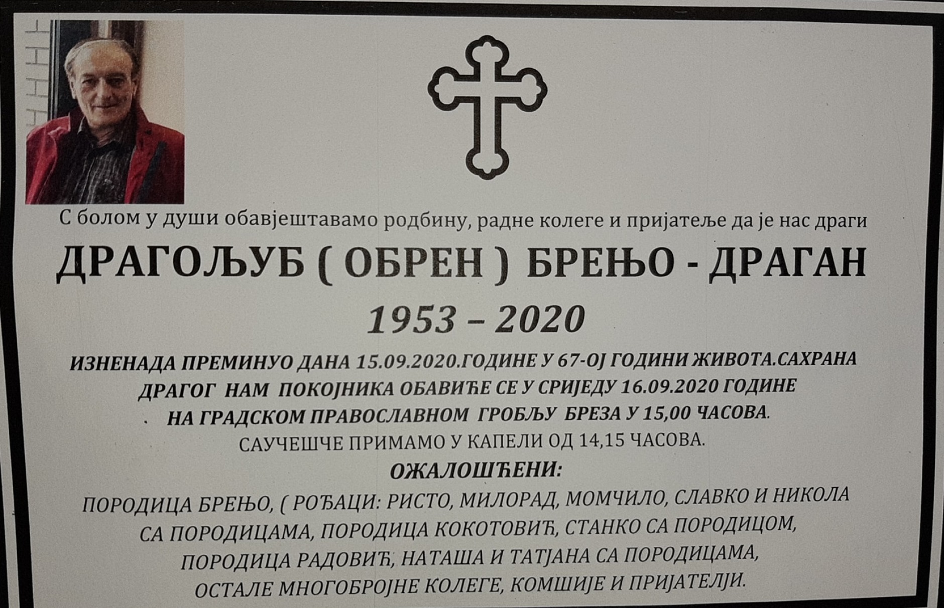 Dragoljub Brenjo, ministar zdravstva u prethodnoj Vladi Zeničko-dobojskog kantona, preminuo je danas u 67. godini života, potvrđeno je Zenicablogu. Brenjo je kao kandidat SBB-a iz Breze u novembru 2015. izabran za ministra zdravstva, poziciju na kojoj ga je u aktuelnom sazivu naslijedio Zavidovićanin Adnan Jupić (A-SDA).