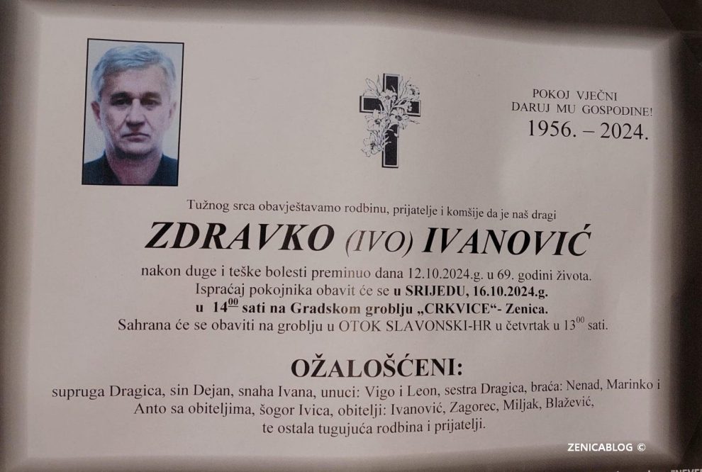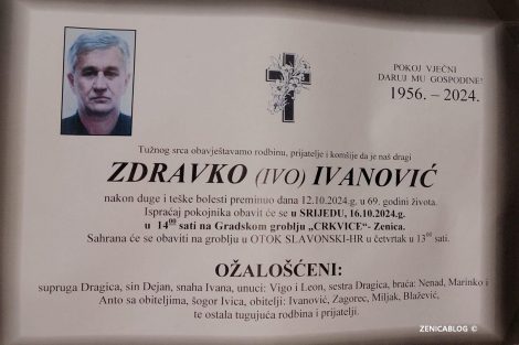 Zdravko (Ive) Ivanović, dugogodišnji nogometni sudija i predsjednik sudijske organizacije ZDK preminuo je u svojoj rodnoj Zenici.