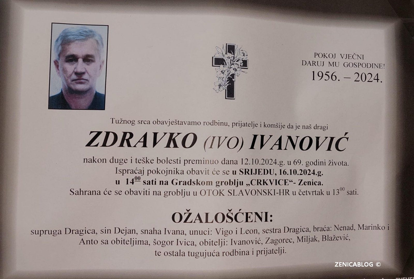Iza Zdravka su ostali supruga Dragica, sin Dejan, snaha Ivana, unuci, sestra, braća.