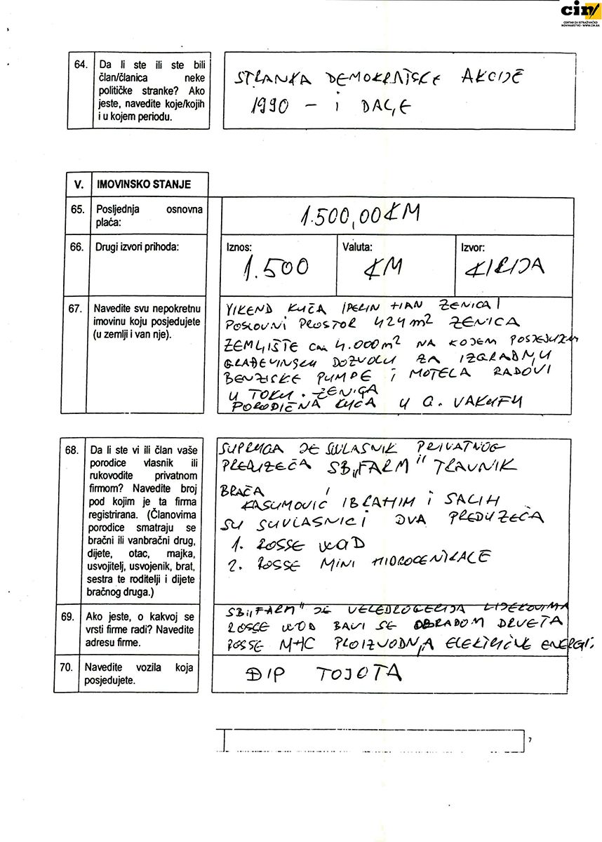 Čovjek je to koji u svojoj imovinskoj kartici ima više vlasničkih izvadaka nad raznim nekretninama, zemljištima i poslovnim prostorima nego što obični građanin ima ličnih papira, uključivši i one svoje djece. Međutim, to ga ne sprječava da se u predizbornoj kampanji na ovogodišnjim lokalnim izborima predstavlja kao skromni i radišni građanin Zenice, čija sposobnost nije mogla doći do izražaja jer je navodno politički “nepodoban”, a sada je odlučio pokazati višak građanske hrabrosti te bez dlake na jeziku Zeničanima obećati bolje sutra.