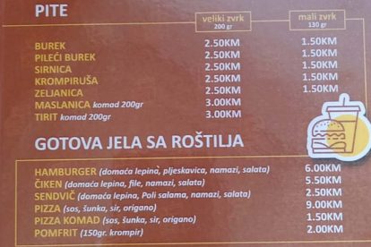 Kao i jela sa roštilja (domaći hamburgeri, chickeni, sendviči, pomfrit)